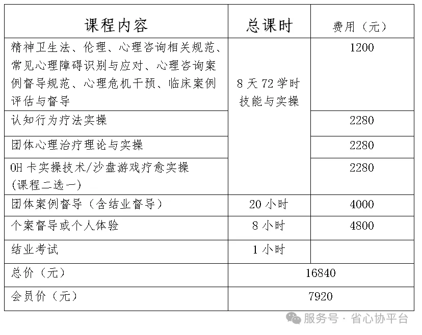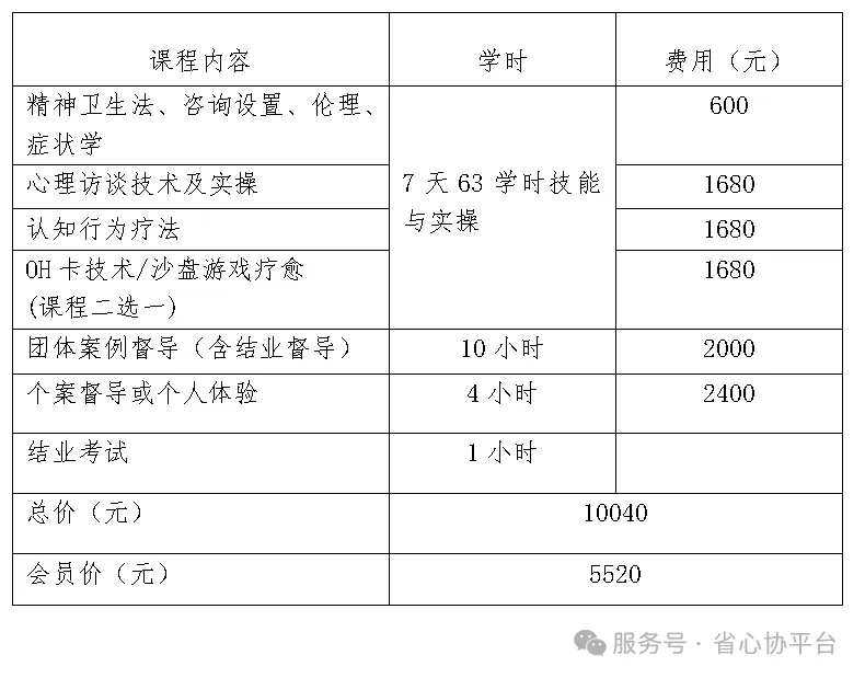 以上费用均包含注册费用、培训课程费用、个案督导费、学习资料费、考试费、证书工本费。