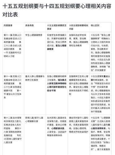 二、十四五与十五五规划纲要心理相关内容比较