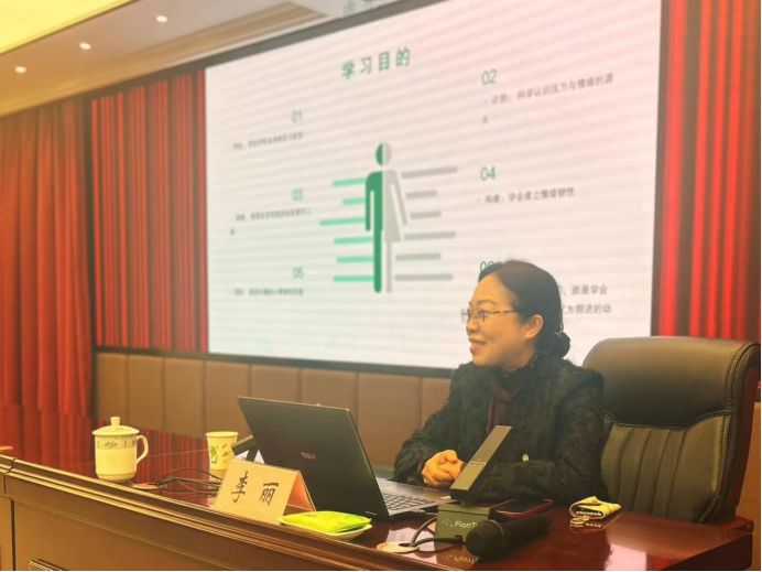 讲座中,李丽秘书长结合工作经验与实际,以通俗语言围绕“正确认识压力”“情绪调节”等核心内容展开讲解,她指出,压力如影随形,与其视作重负,不如视为砥石,学会与压力共舞,方能在琐碎中觅欢喜、平凡中安幸福。